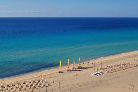 Dette fantastiske strandhotel ligger lige på kanten af den skønne 25 km. lange finsandede strand Playa De Jandia, og beliggenheden fåes ikke bedre. Iberostar Playa Gaviotas er designet som en halvkreds ud mod havet og stranden for at give gæsterne den optimale udsigt. Her er rige muligheder for den aktive familie med et stort udbud af vandsport, sjov og afveksling. Trænger du til en dukkert kan du vælge en af swimming poolene i den store have eller snuppe en forfriskende tur i bølgerne.