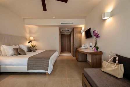 Hvert værelse rummer badeværelse med toilet og karbad eller bruseniche samt hårtørrer. Der er telefon og satellit-tv. Pengeskab og internetadgang kan benyttes – mod betaling. Tekøkkenet har køleskab. Der er terrasse eller balkon med udsigt over haven, poolen eller havet.