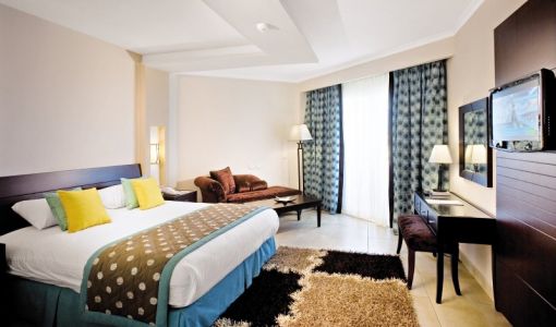 Anwaj Blue Beach Resort & Spa består af 371 værelser, hvoraf 211 er standard værelser med haveudsigt, 22 familieværelser med 2 rum, 59 familieværelser med 1 stort rum, 72 deluxe værelser, 2 suiter, 2 executive suiter og 3 deluxe suiter. Alle værelserne har enten balkon eller terrasse med have, pool, hav- eller bjergudsigt.