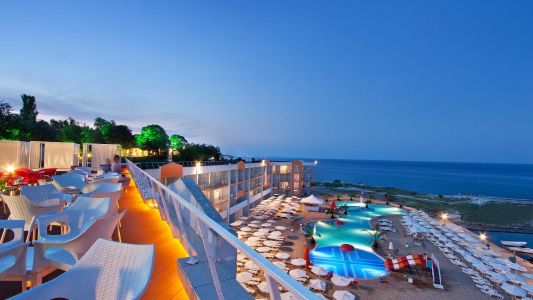 På hotellets udendørsareal er det også muligt at finde et udendørs diskotek, solterrasse, otte vandrutsjebaner, en aquapark, pool, solsenge ved både poolen og stranden. Ved poolen og stranden er der parasoller inkluderet, dog koster badehåndklæderne et depositum ved poolen.