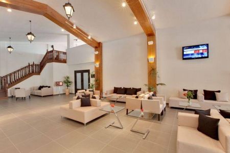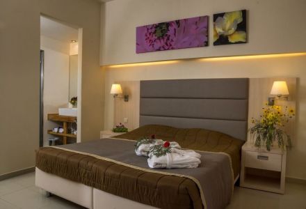 Hotellet har 253 værelser i 2 etager og er bygget som en lille by i en vidstrakt og smukt anlagt have. Hovedbygningen har en lobby med reception, internethjørne (mod gebyr), WiFi og leje af laptop. Et indbydende siddeområde med tv. Endvidere bar og restaurant med udendørsterrasse med en flot panoramaudsigt over havet, minimarked og à la carte-restaurant med middelhavskøkken.