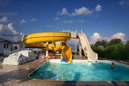 2 separate swimmingpools, en med vandrutsjebane, legeplads, 6 gange ugentligt miniklub for børn 4-12 år kl. 10.00-14.20 og kl. 16.30-18.30 (flersproget pasning). Børnemenu ved buffet.