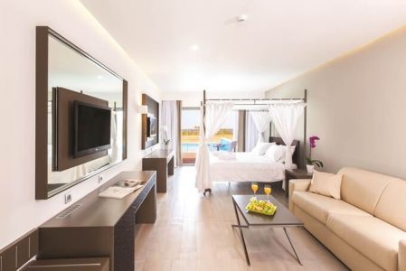 Disse værelser har et stue/soverum med sofaseng samt et soveværelse adskilt med skydedør, ellers udstyret som standardværelse plus pool udsigt.
