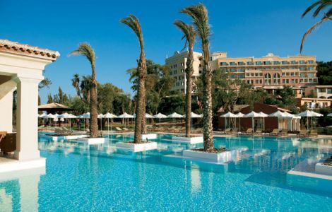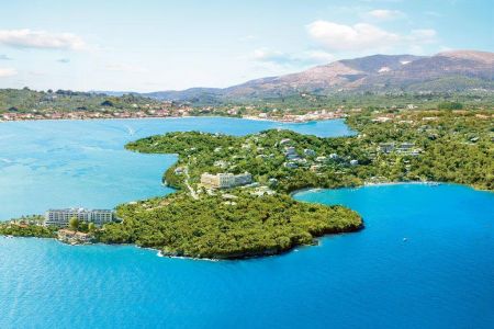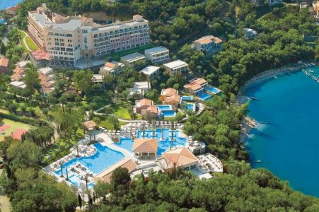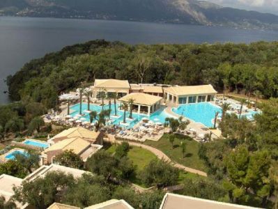 Hotellet er beliggende på en smuk bjergskråning på den grønne halvø Kommeno. Fra Hotellet er en skøn udsigt over havet med Grækenland som betagende baggrund. Nedenfor hotellet er der en idyllisk bugt med en lille sandet stenstrand. En lille trappe i natursten gør det muligt at komme hurtigt fra hotellet og ned på stranden. Korfu by med de mange shoppingmuligheder, restauranter og barer ligger 12 km væk.
