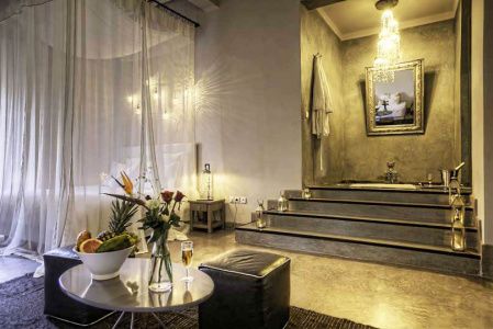 Hotellet tilbyder lækkerier fra hele Marokko. Der er mulighed for både morgenmad, middagsmad og aftensmad. Udover det kan der købes snacks ved poolen eller i loungen. Hotellet tilbyder også specielmenuer med musik på terrassen.